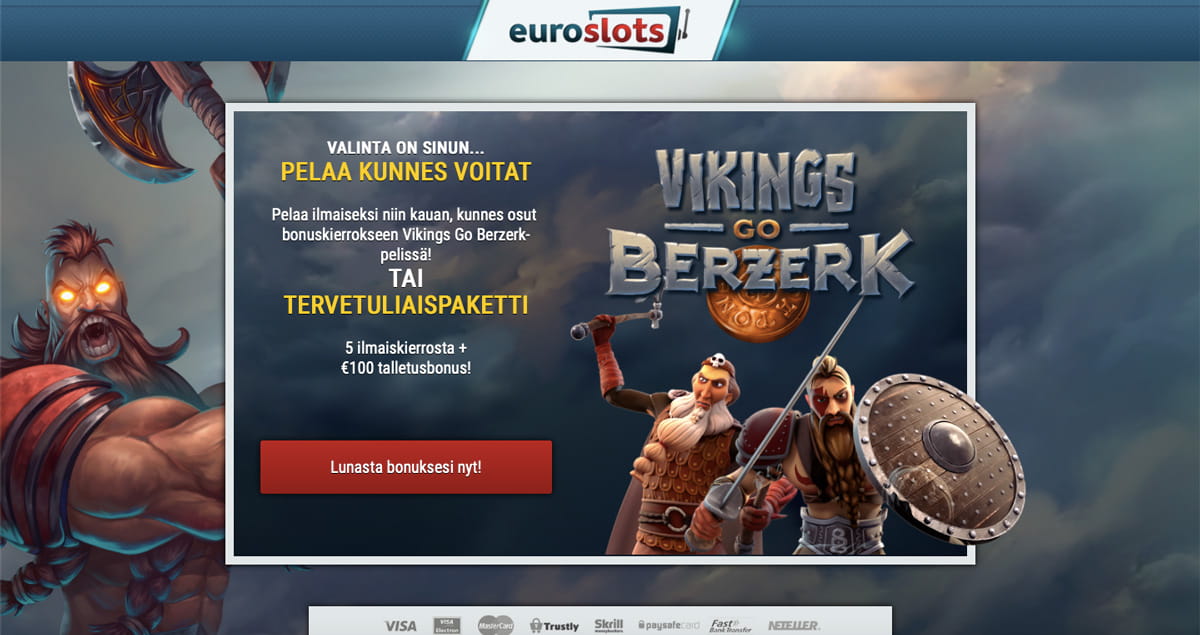 Tämä EuroSlots-bonus on ihan hyväksyttävä tarjous, vaikka ei se toki päätä huimaa, jos sitä verrataan moniin muihin nettikasinobonuksiin. Mutta bonus on aina bonus ja siitä on oltava kiitollinen. Tämä etuus on lunastettavissa jokaiselle ensitalletuksen tekijälle, kun talletussumma on minimissään 20 euroa. On kuitenkin hyvä ottaa huomioon, että se ei ole lunastettavissa talletuksille, jotka tehdään PaysafeCardin, Skrillin tai Netellerin kautta.