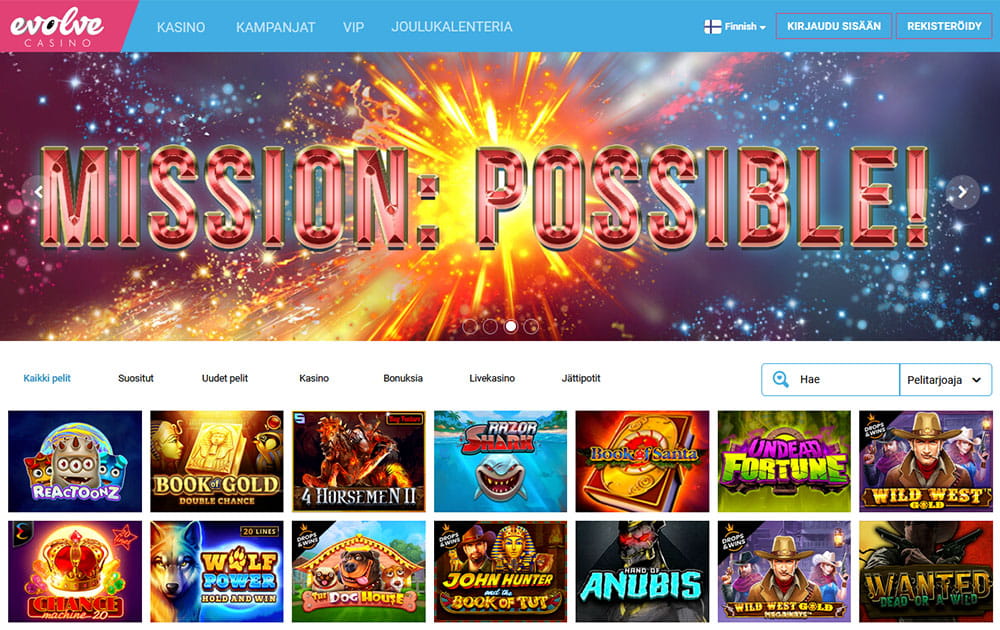 Evolve Casino on tuore uutuus, joka ihastuttaa uskomattomalla pelivalikoimalla ja suomenkielisellä verkkosivulla!