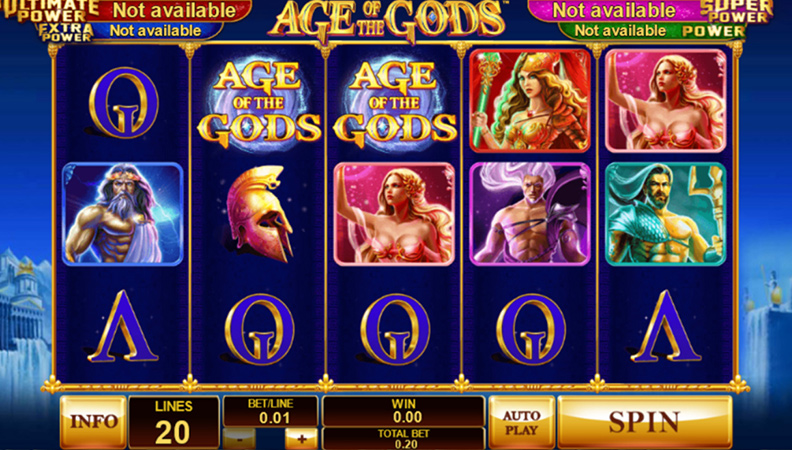 Age of the Gods -slotti pyörii viidellä rullalla ja kolmella rivillä, tarjoten 20 kiinteää voittolinjaa ja monia minipelejä. Tämä tuotos on julkaistu vuonna 2016 ja tarjoaa huikean elämyksen upeilla grafiikoilla. Pelaamaan päästään 0,20 euron minimipanoksella ja korkeimmillaan hyväksytään 40 euroa. Kyseessä on progressiivinen jättipotti, jonka voittosummat voivat nousta mahtaviin lukemiin.