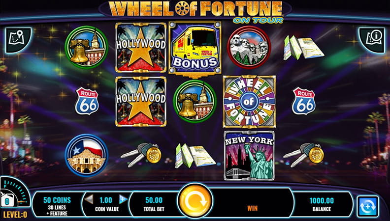 Wheel of Fortune on Tour -kolikkopeli käyttää todella suosittua gameshow -teemaa, eikä siitä puutu jännittäviä peliominaisuuksia. Tämän pelin parissa aktivoit sitä enemmän bonuksia, mitä pidempään sitä pelaat. Yleisin bonustoiminto on bussi-ominaisuus, jonka aikana bussi ylittää näytön ja tipauttaa pelialustalle 2-4 ylimääräistä wild-symbolia, kasvattaen pelaajan voittomahdollisuuksia huomattavasti.