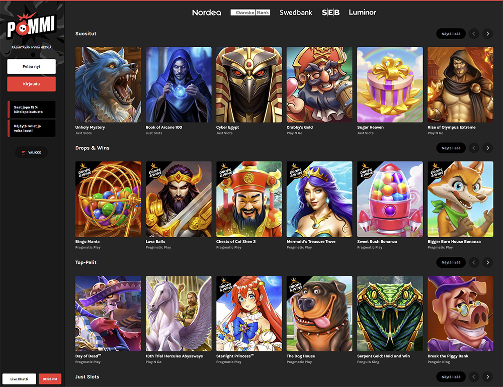 Pommi kasino -arvosteluPelivalikoima ja Tervetulobonus Vuonna 2025